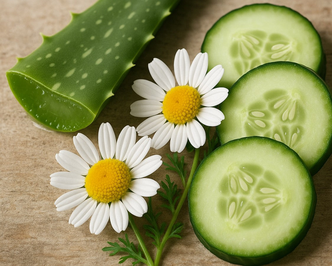 - Aloe Vera: Soothes, rejuvenates, and heals the skin.